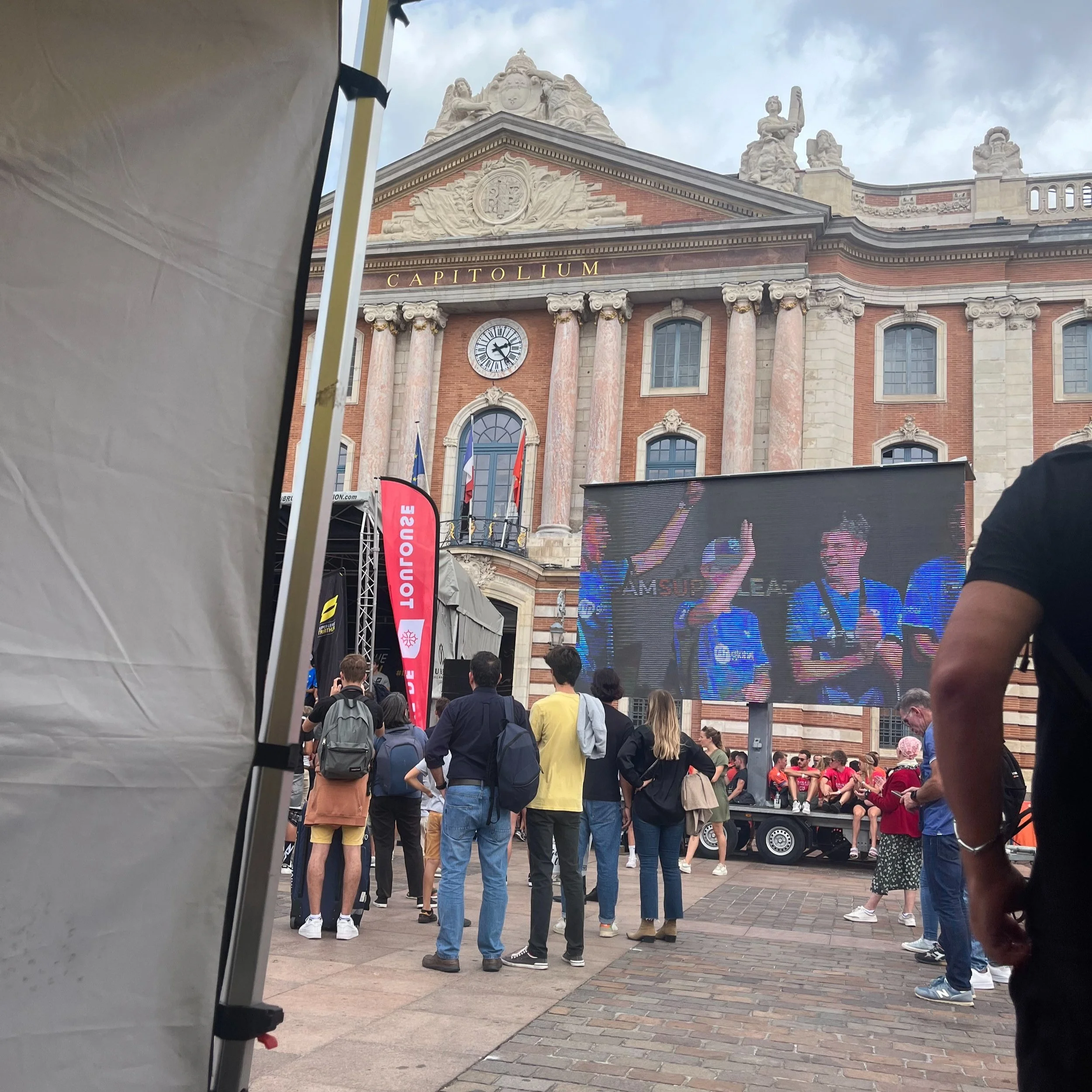 As part of the France leg of the 2023 Superleague Triathlon season a fanzone was created to welcome the Triathletes and spectators to the city. Taking over the Place de Capitole the fanzone also included a mass participation event for the residents of Toulouse.